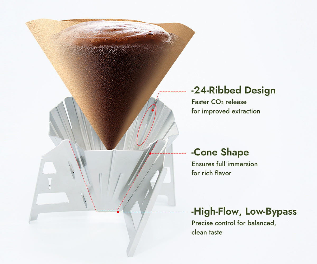 Enhanced Extraction with Ribbed Structure: Engineered with a unique ribbed design for improved flow rate and reduced bypass, it helps release CO₂ faster during bloom, enhancing the clarity and balance of each cup.