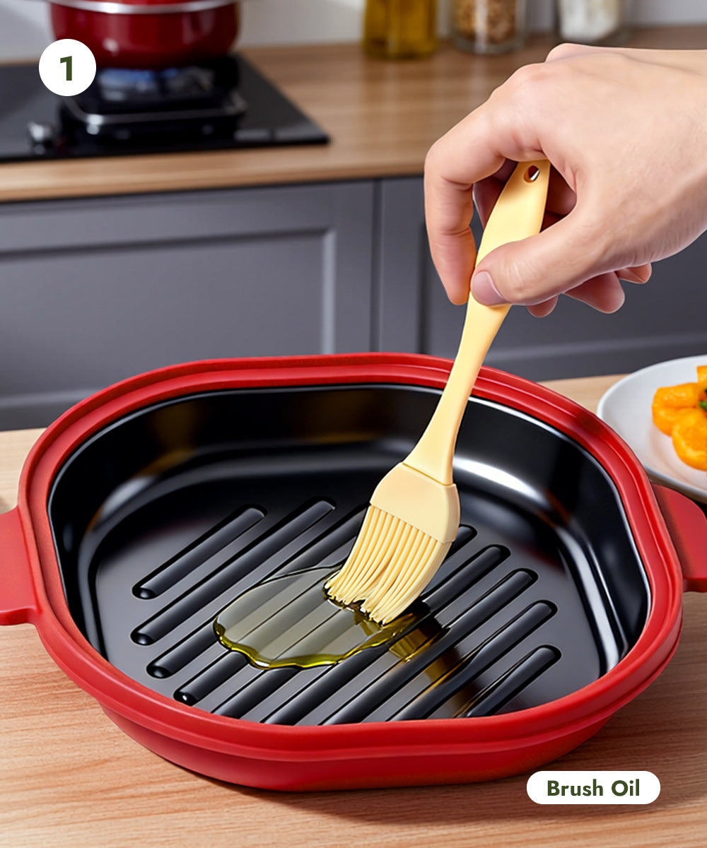 Lightly coat the grill surface using the included oil brush for better flavor and crispier results.
