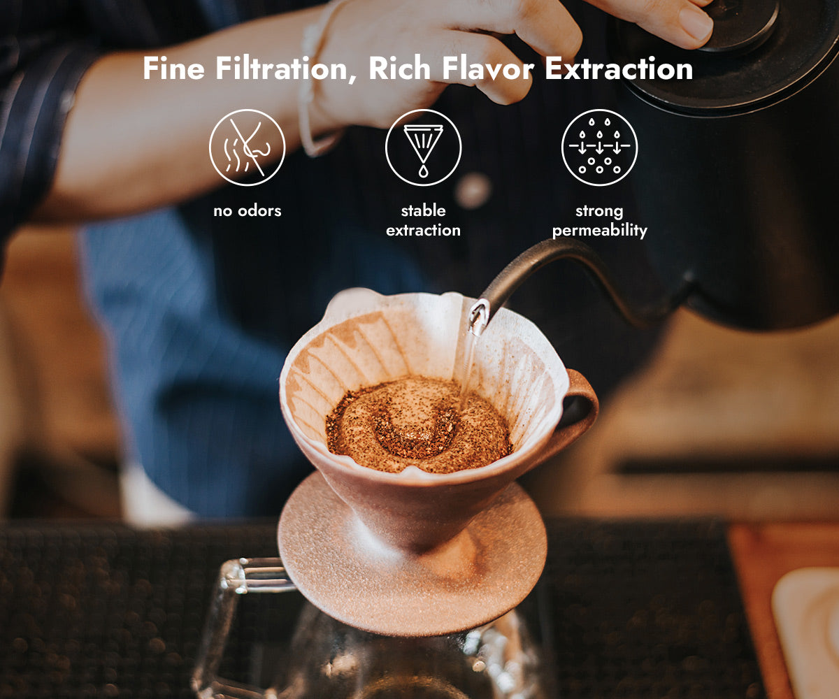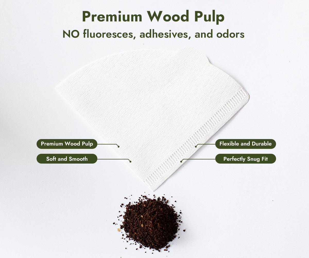 Crafted from natural premium wood pulp, our filters are free from fluoresces, adhesives, and odors, providing a clean, pure coffee experience without unwanted flavors.