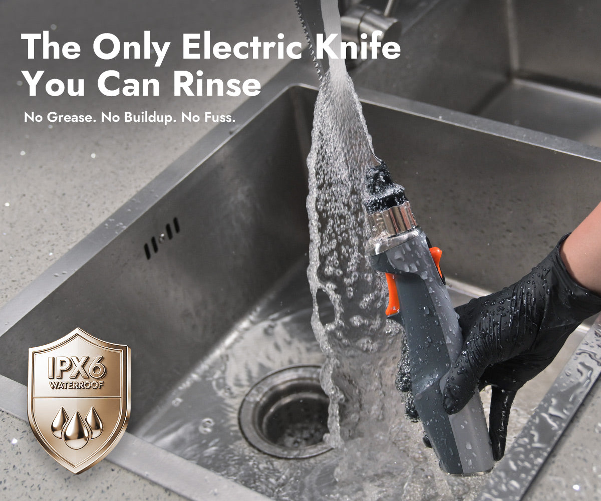 Fully Waterproof (IPX6) — The First Electric Knife You Can Rinse