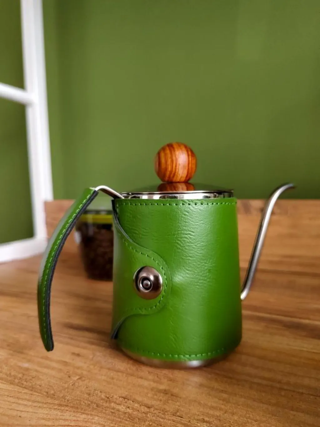 A masterpiece of brewing craftsmanship. The leather-wrapped pour-over kettle combines soft, fine textures with an exquisite design, making it a true work of art in your coffee ritual.